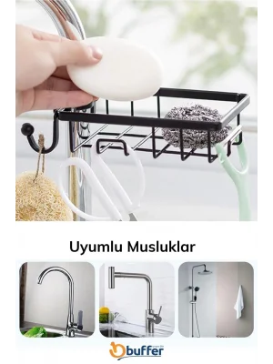 Corcoz Mutfak ve Banyo Muslukları İçin Paslanmaz Çelik Sabun Sünger Tutucu Aparat - CZ304